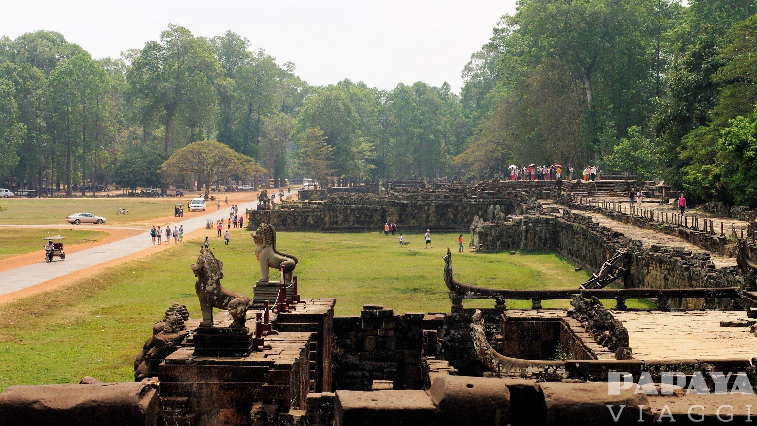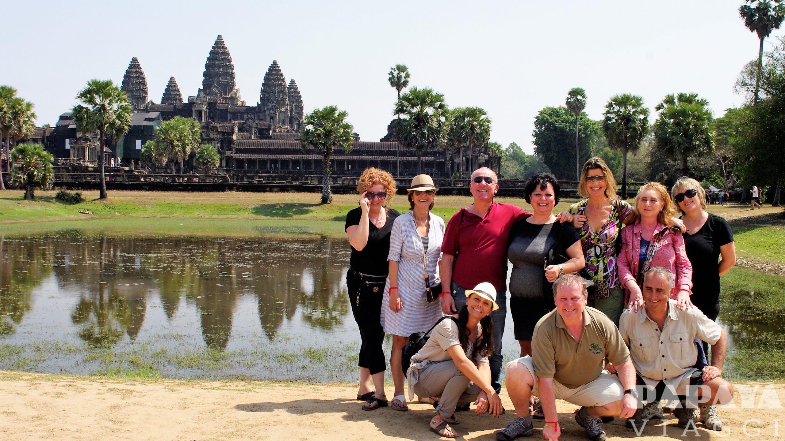 Partenza all’alba per la visita della madre di tutti i Templi: l’Angkor Wat, massima espressione del genio Khmer. Considerata la costruzione religiosa più grande del mondo, Angkor Wat è la fusione perfetta di simbolismo e simmetria, fonte di orgoglio e forza per tutti i Khmers. Dopo la benedizione dei monaci che vivono nel tempio, faremo una colazione picnic nel sito. Possibilità di fare il sorvolo sulle mongolfiere. Nel pomeriggio visiteremo la città fortificata di Angkor Thom, ultima gloriosa capitale del regno Khmer, che occupa una superficie di 10 kmq, portando a livelli mai raggiunti prima, il concetto di “monumentale”. Proseguiremo con la terrazza degli elefanti, una gigantesca tribuna per cerimonie pubbliche, e il terrazzo del Re lebbroso, una piattaforma alta 7 metri, sulla cui cima si erge una statua nuda e asessuata: uno dei misteri di Angkor. Accanto giace il Baphoun, che sembra sia stato uno fra i più bei templi nel momento del suo massimo splendore. Chiuderemo la giornata con il tempio di Bayon, con le sue 54 guglie che ricordano lo stile gotico, ornate da 216 giganteschi volti dal gelido sorriso, somiglianti al sovrano che li fece costruire. Rientro in hotel. Pasti liberi, pernottamento.