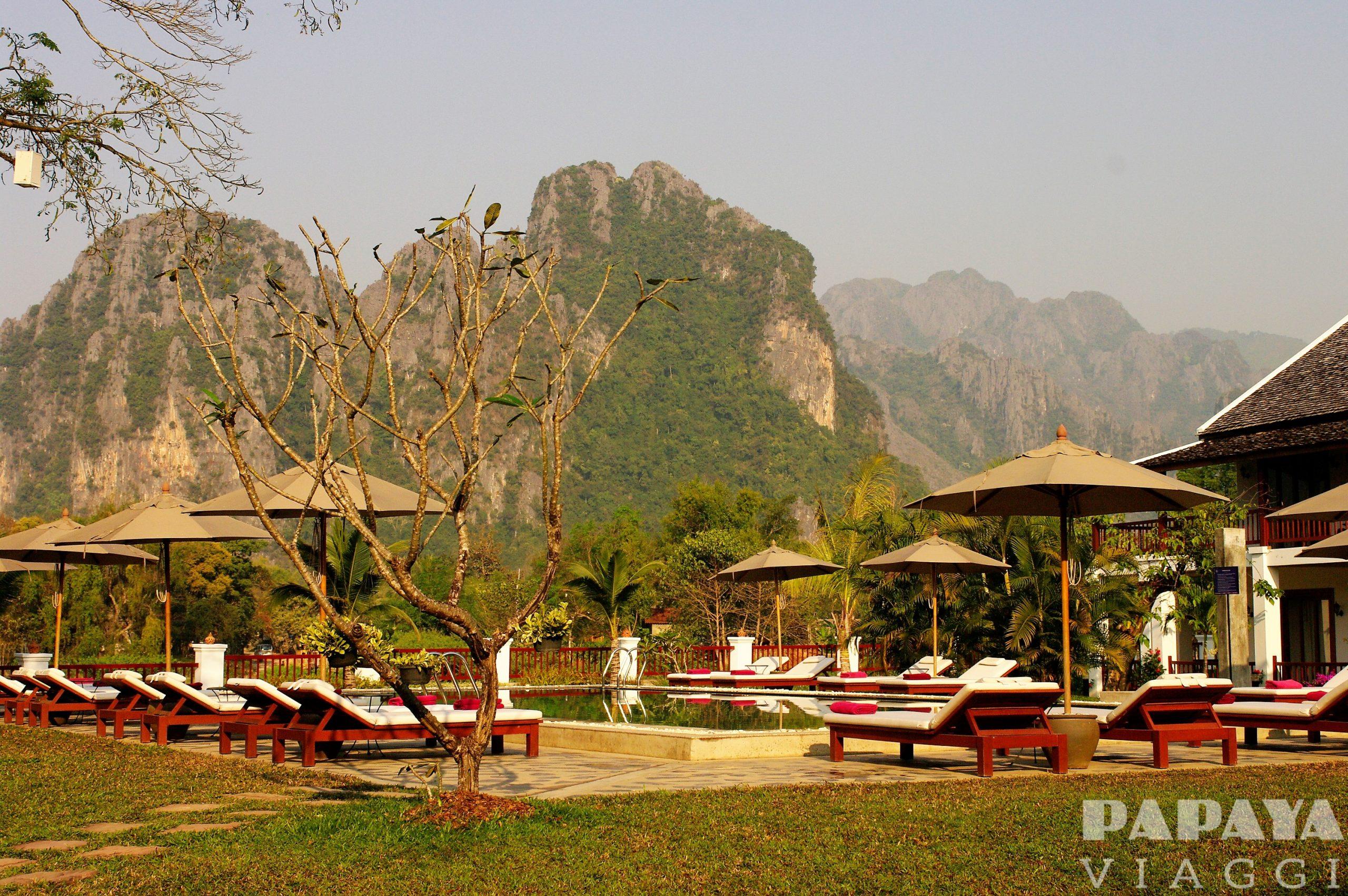 Prima colazione in hotel. Oggi percorreremo la Route 13, una delle strade più panoramiche del Laos. Montagne, bellissime vallate, foreste e piccoli villaggi rurali. Arrivo a Vang Vieng nel primo pomeriggio. Vang Vieng è una cittadina circondata da un paesaggio molto suggestivo, formato da montagne calcaree colme di bellissime grotte e conformazioni rocciose, paradiso degli speleologi. Pittoresco il suo fiume che scorre ai piedi e dentro le pareti di calcare. Negli ultimi anni, la città è divenuta paradiso degli sport estremi, in particolare il tubing (un rafting fatto su grandi camere d’aria), e questo ha richiamato molti giovani turisti che hanno molto agevolato lo sviluppo della vita notturna. Visita di alcune grotte e punti panoramici. Pasti liberi, pernotto in hotel.